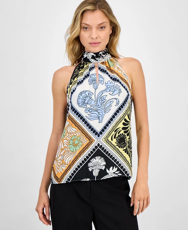 Jm Collection Women's Printed Split-Neck Blouse, Macy's Exclusive