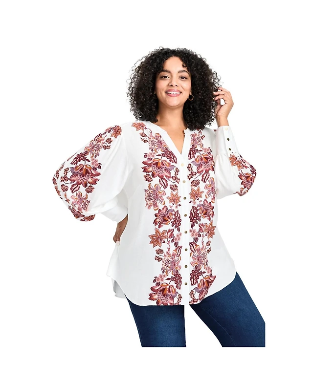 Avenue Women's Plus Cara Blouson Peasant Blouse