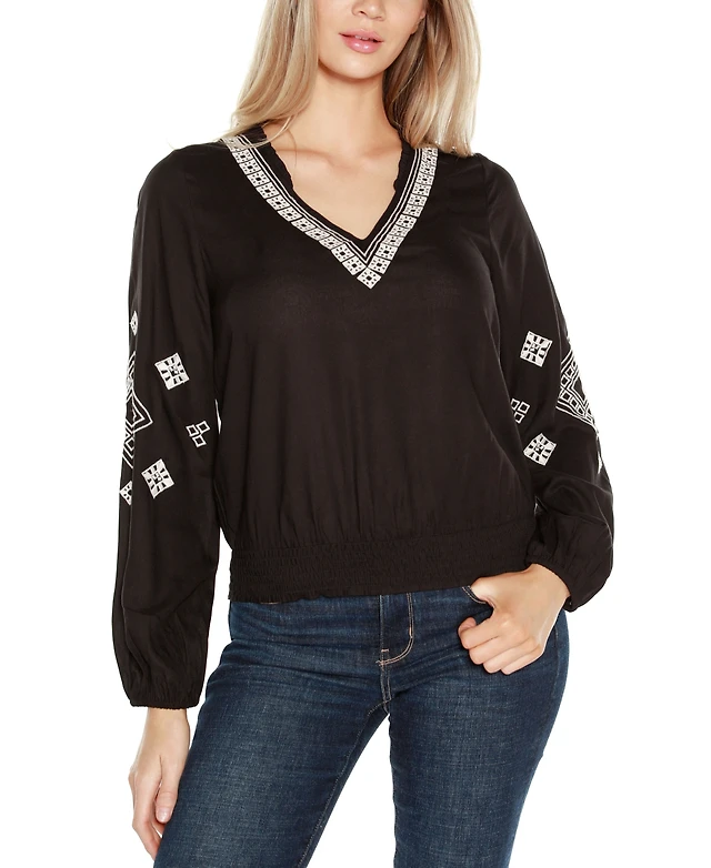 CeCe Women's Long-Sleeve Bow-Tied V-Neck Blouse