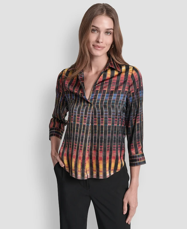 Donna Karan New York Women's Long-Sleeve Printed Shawl-Collar Blouse