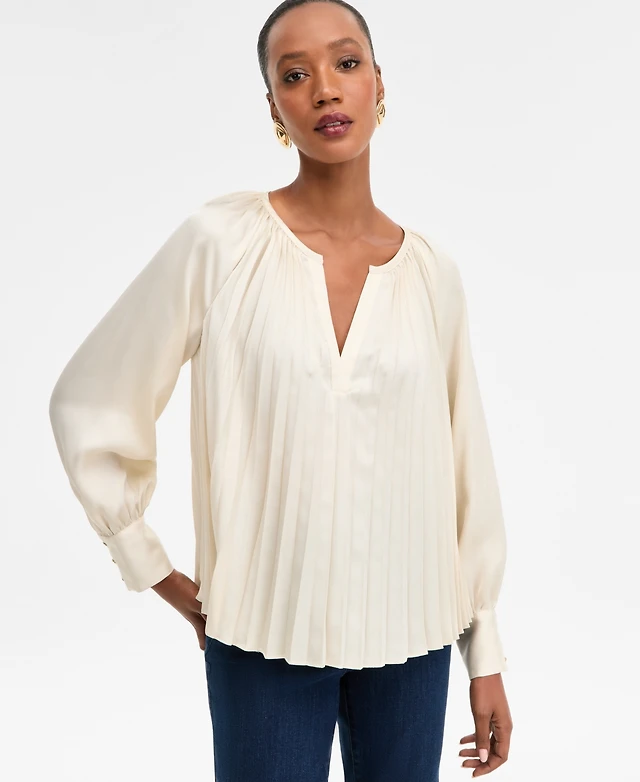 Kasper Women's Pleated V-Neck Cap-Sleeve Blouse, Regular & Petite