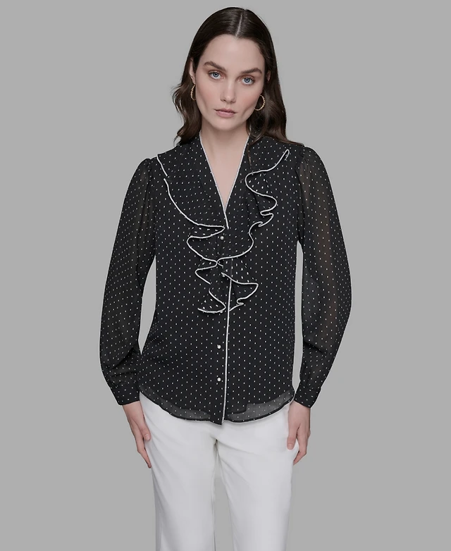 Lauren Ralph Women's Ruffle Detail Tie-Neck Blouse