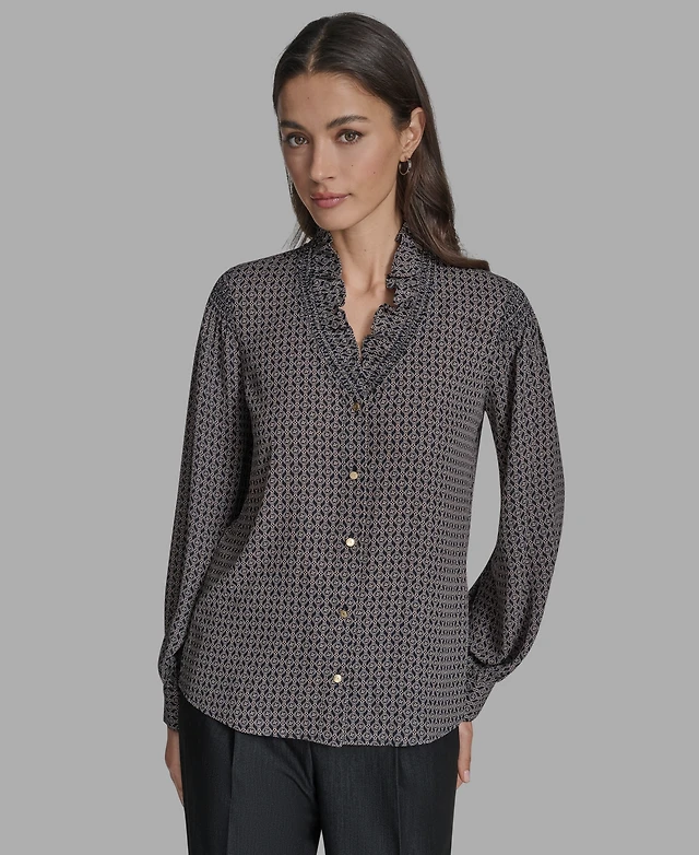 Dkny Women's Printed Puff-Sleeve Ruched Top