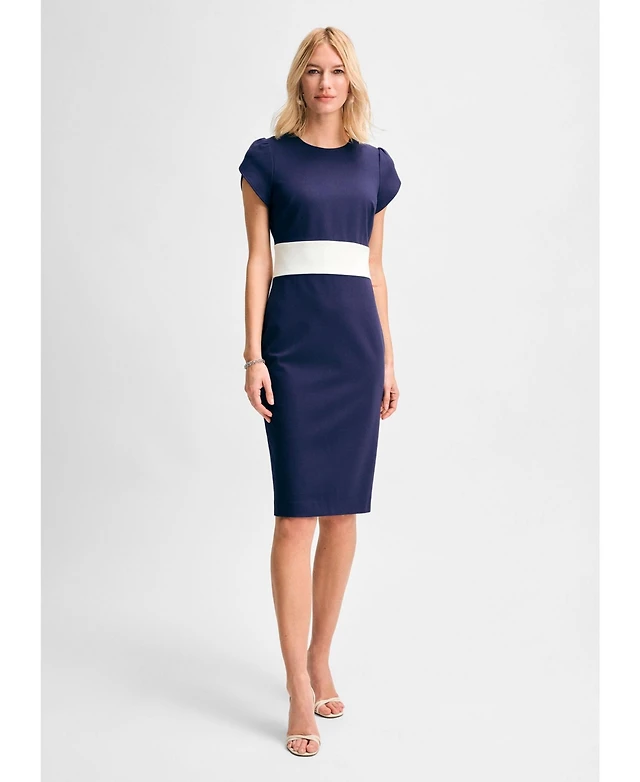 Lands' End Women's Cotton Blend Short Sleeve Midi Dress with Cutwork