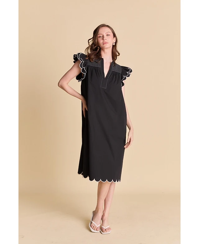 Modenaire Women's Flutter-Sleeve Babydoll Dress