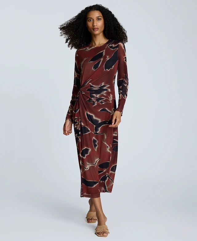 Eliza J Women's Long-Sleeve Printed-Mesh Midi Dress