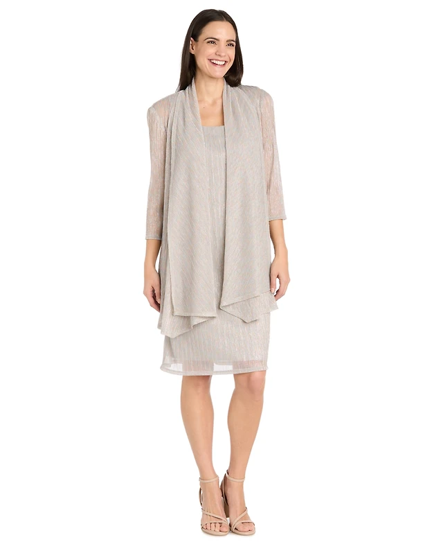 Taylor Women's Long-Sleeve Jacquard A-Line Wrap Dress
