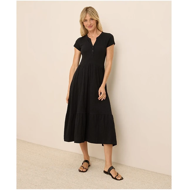 Hope & Henry Women's Long Sleeve Smocked Waist Keyhole Dress