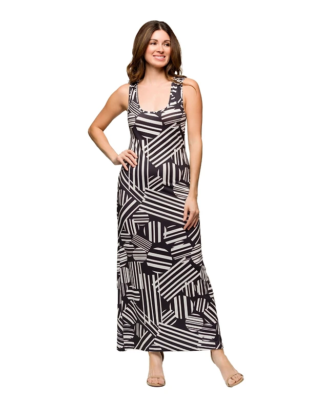 Vince Camuto Women's Printed Sleeveless Keyhole Back Maxi Dress