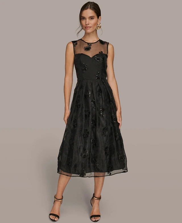 Betsy & Adam Women's Sequin All-Over Flower Long Dress