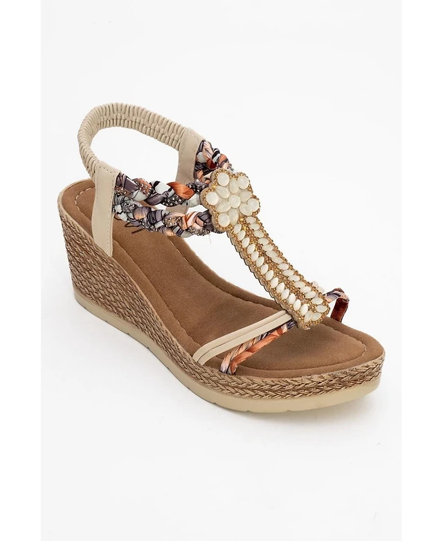 Gc Shoes Women's Ellis Metallic Double Band Slingback Espadrille Wedge Sandals