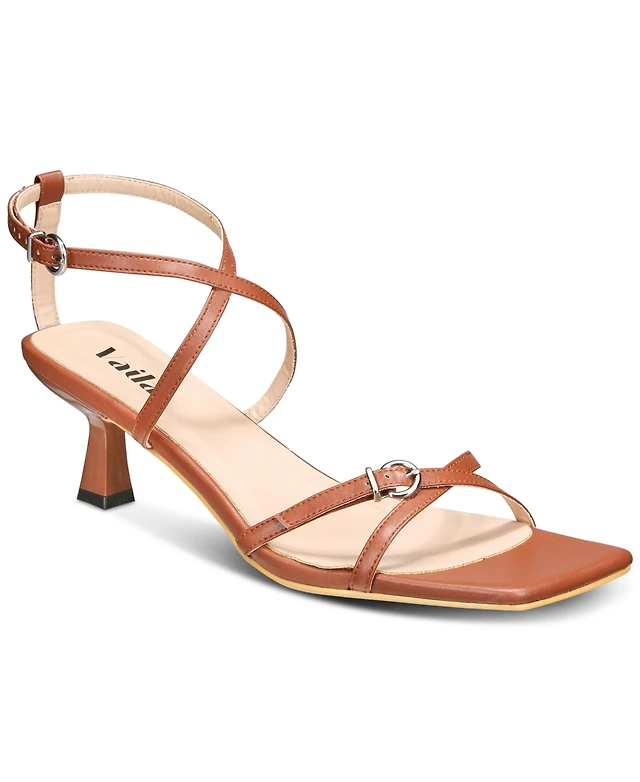 Journee Collection Women's Jemry Asymmetrical Strap Kitten Heel Dress Sandals