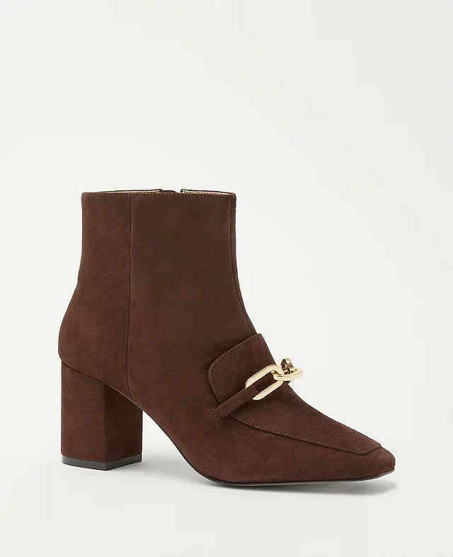 Ann Taylor Chain Block Heel Suede Booties Chocolate Women's