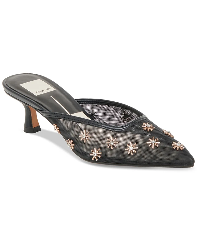 Dolce Vita Women's Kamra Pearl Mid Satin Strappy Kitten Heel Pumps