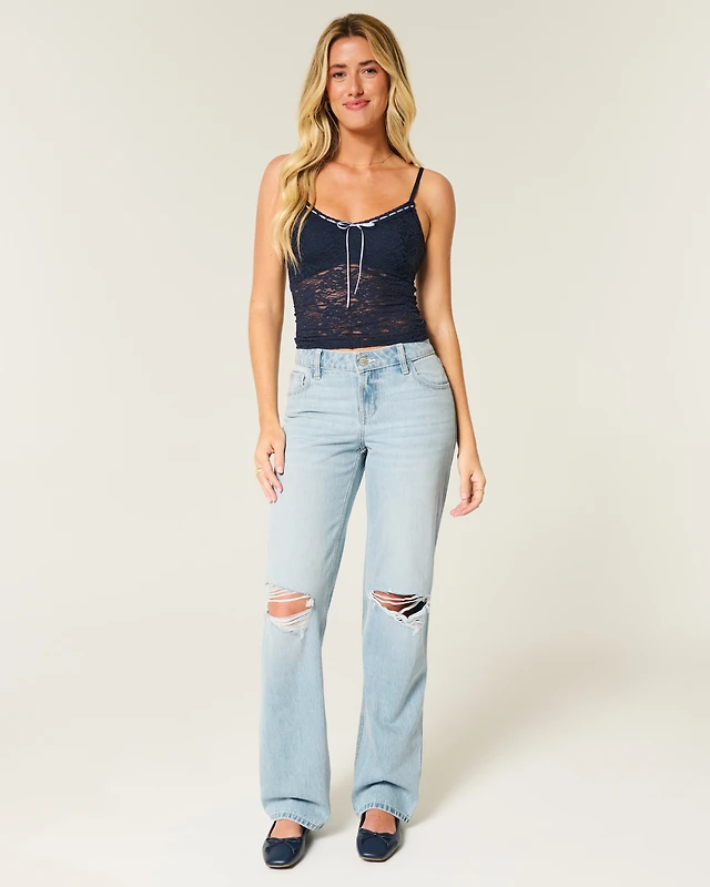 High Waisted Light Wash Cuffed Relaxed Straight Jeans