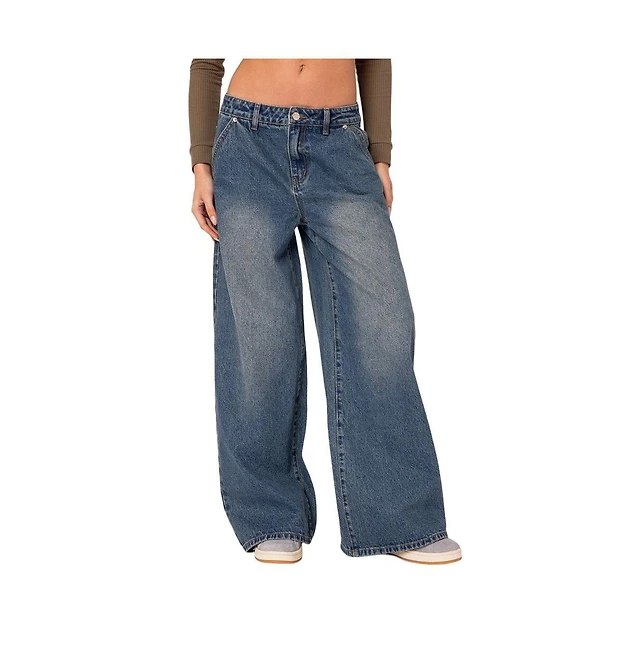 Edikted Womens Distressed Low Rise Baggy Jeans
