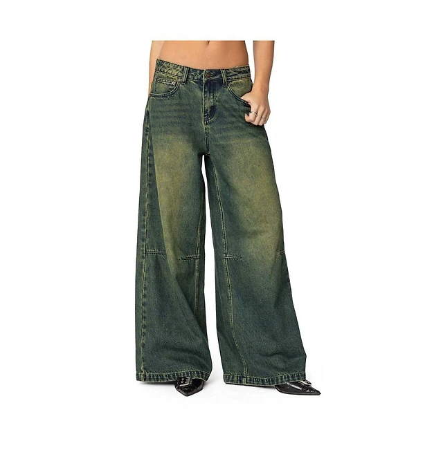 Edikted Womens Distressed Low Rise Baggy Jeans