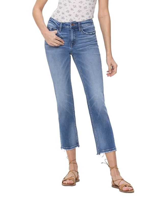 Flying Monkey Women's High Rise Frayed Hem Crop Straight Jeans