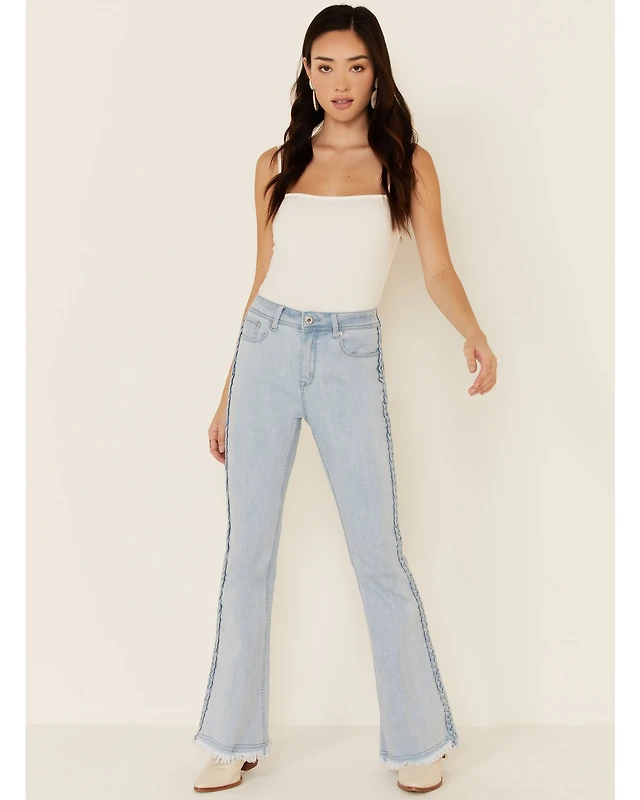 Avec Les Filles Women's Flare Leg Patch Pocket Denim Jeans