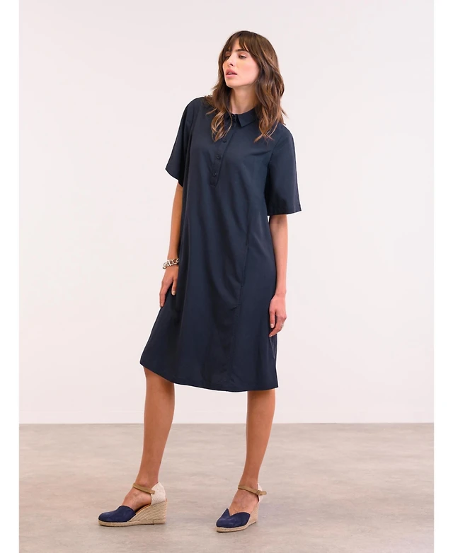 Pact Women's Organic Cotton Canopy Linen Blend Notch Neck Dress