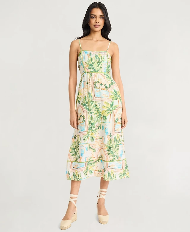 En Saison Women's Nara Cotton Embroidered Tie-Strap Midi Dress