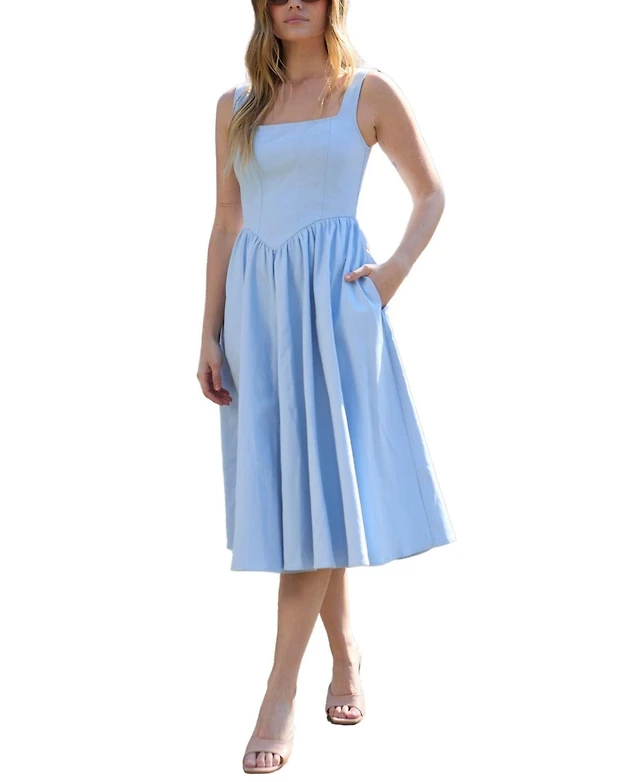Miss Circle Women Reina Blue Drop Waist Corset Midi Dress