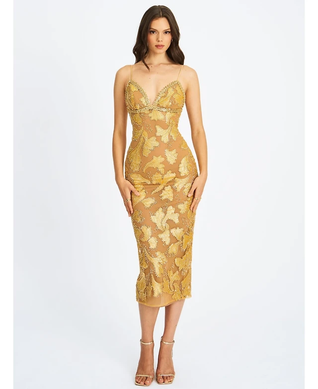 Miss Circle Women's Edie Gold Beaded Sequin Midi Pencil Dress