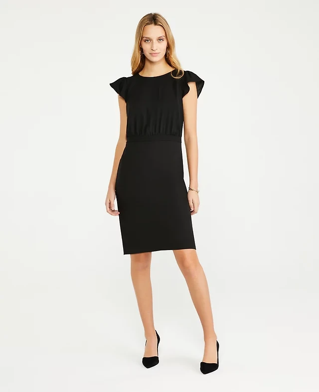 Ann Taylor The Flutter Sleeve Sheath Dress in Seasonless Stretch Size 0 Black Women's