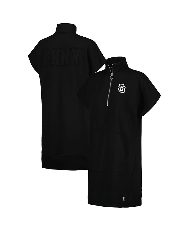 Dkny Women's Black San Diego Padres Emily Quarter-Zip Sneaker Dress