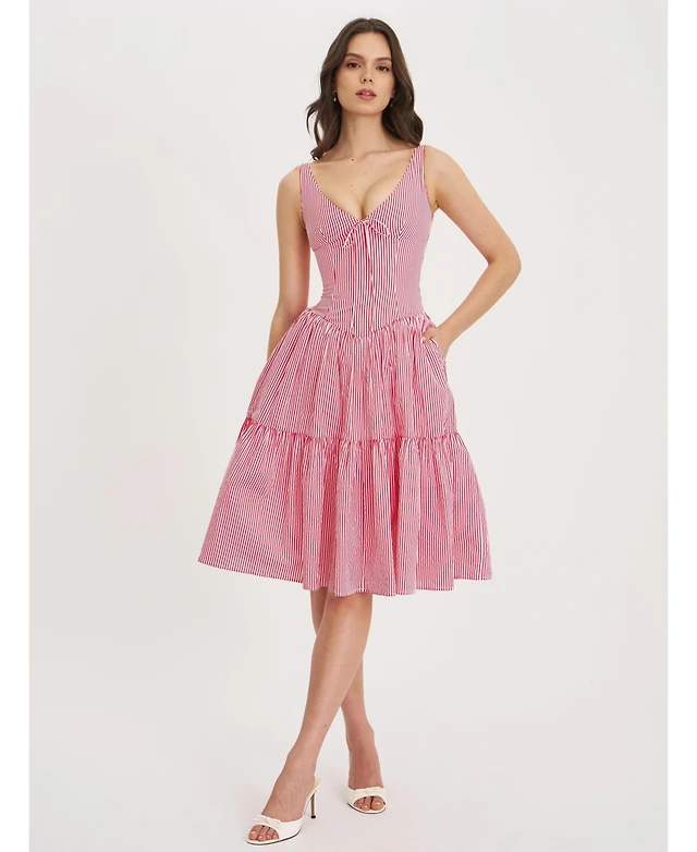 Miss Circle Women's Susanna Red Gingham Halter Drop Waist Midi Dress