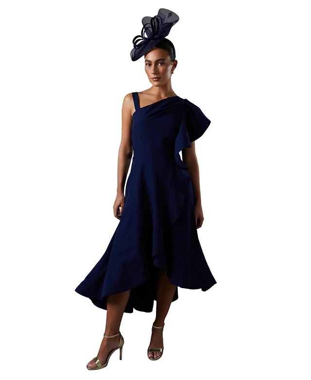 Coast Women's One Shoulder Crepe Ruffle Midi Dress