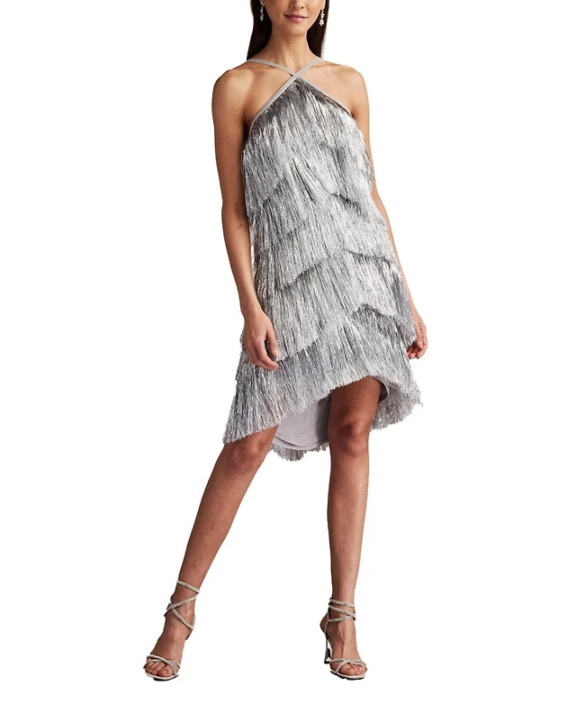 Bebe Women's Tiered Plunge Neck Lurex Midi Dress