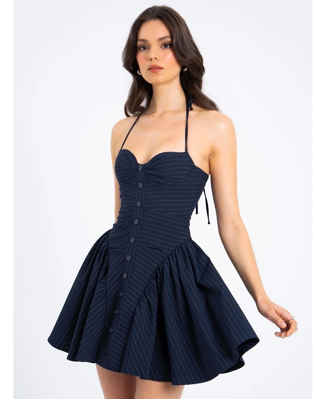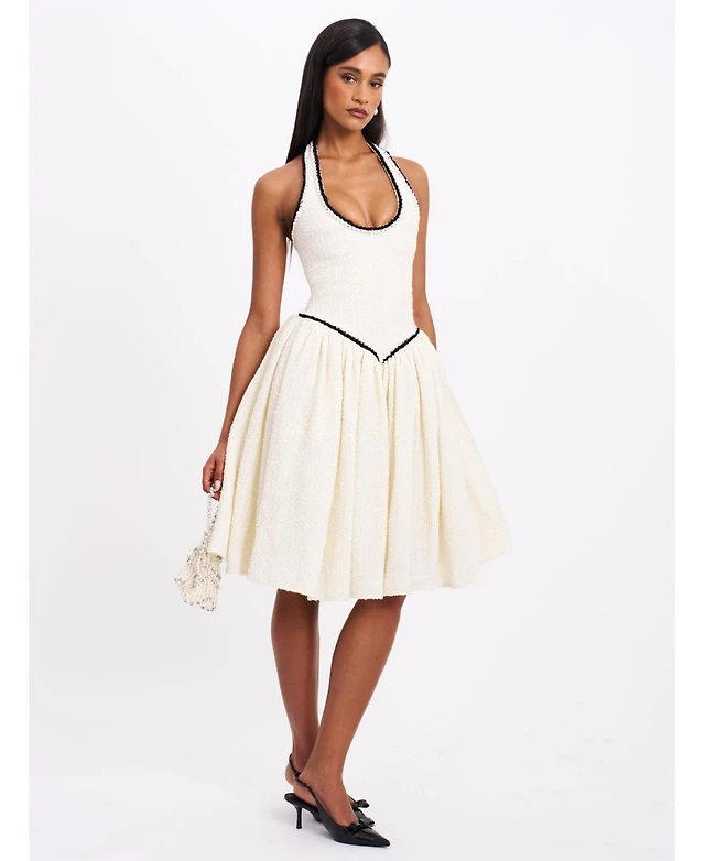 Miss Circle Women Aaliyah White Eyelet Plunging Halter Drop Waist Mini Dress