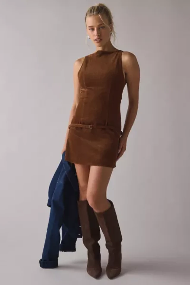 Lioness Coquette Belted Corduroy Mini Dress