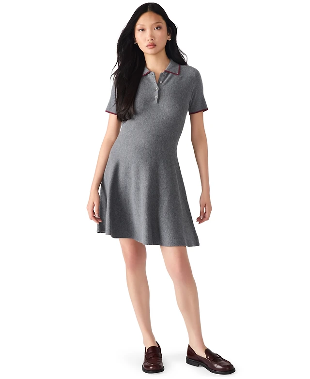 Hope & Henry Women's Long Sleeve Tipped Button Front Sweater Dress