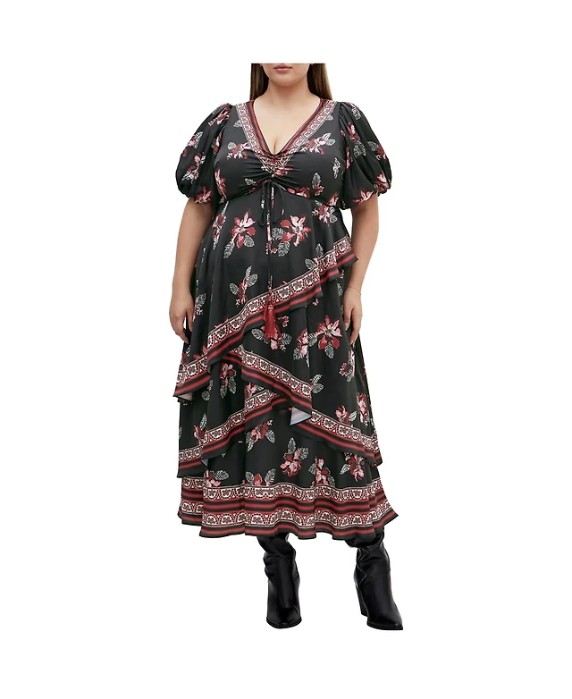 Fashion-szn Curve Women's Floral Print Peplum Midi Dress