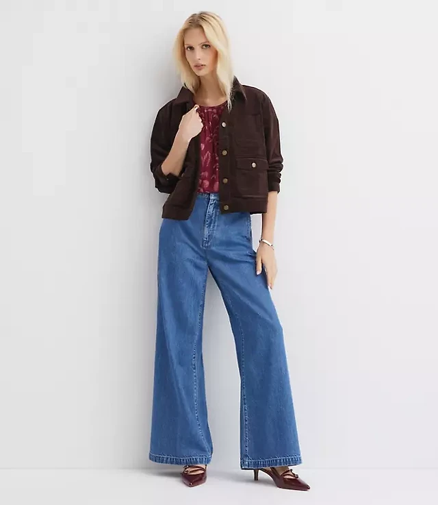 Petite Cuffed High Rise Wide Leg Jeans Rinse Wash