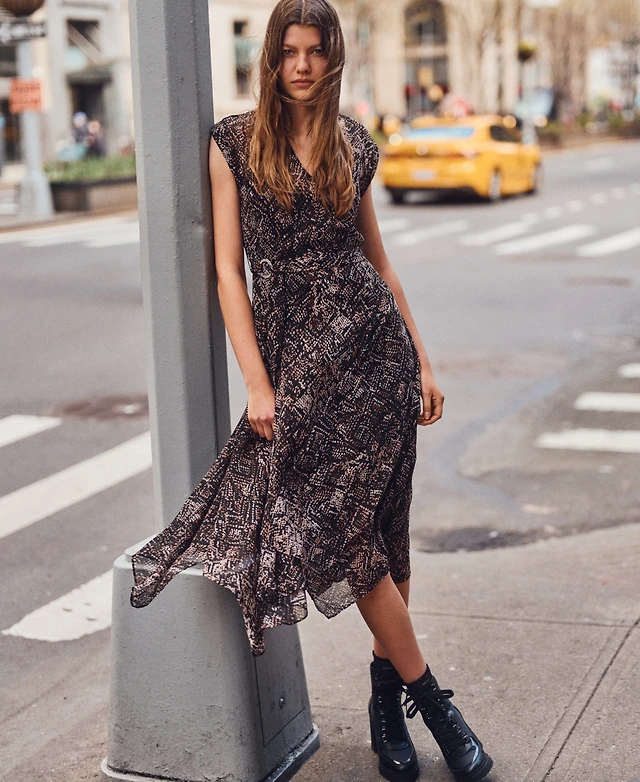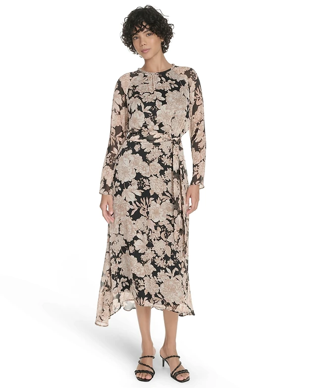 Dkny Women's Chiffon Pleated Tie Collar Shift Dress