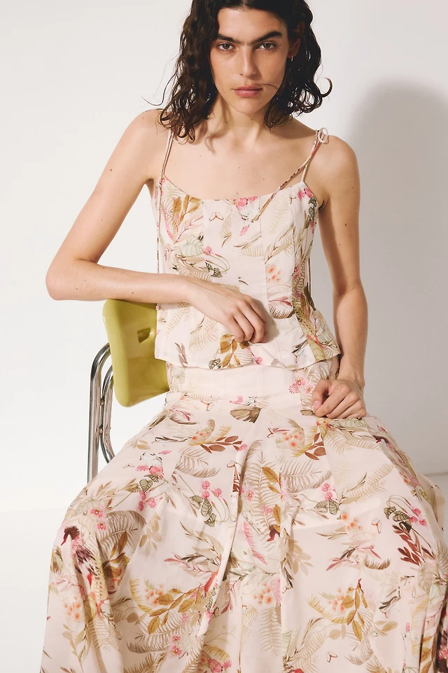 Tropical Shirred Peplum Tank Top