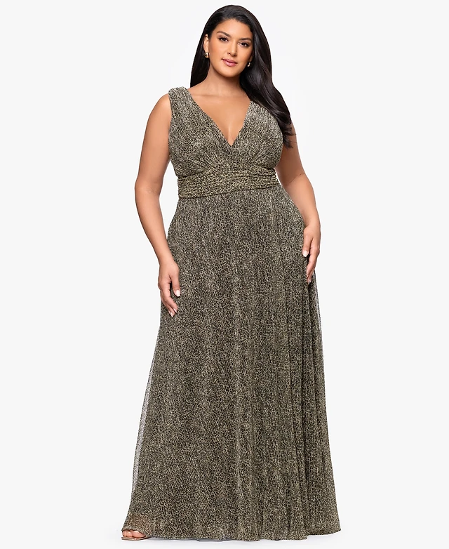 Betsy & Adam Women's Asymmetric Ruffled Sleeveless Velvet Gown