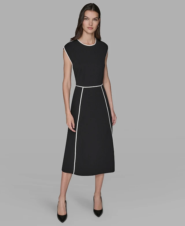 Donna Karan New York Women's Crepe Hardware A-Line Midi Dress