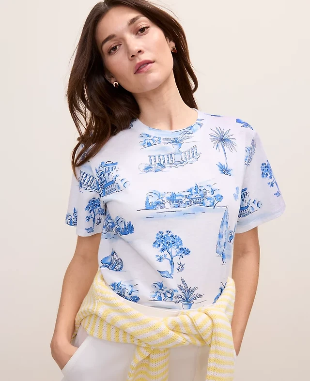 Ann Taylor Weekend Embroidered Elbow Sleeve T-Shirt Night Sky Women's