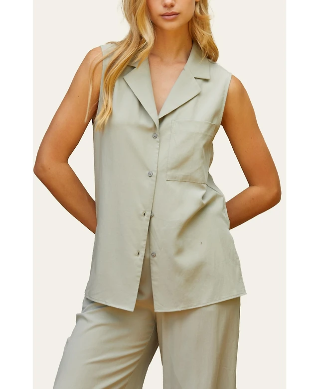 Crescent Women's Lisa Sleeveless Button Up Tee