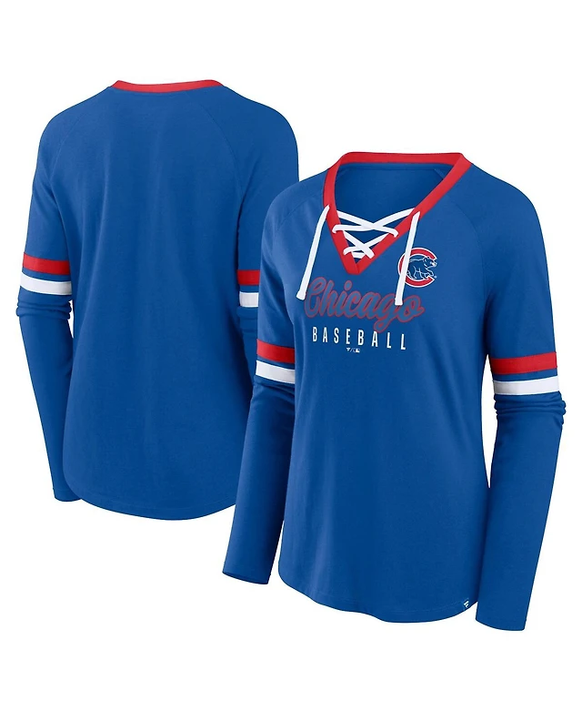 Fanatics Women's Royal Chicago Cubs Won Done Raglan Lace-Up Long Sleeve T-Shirt