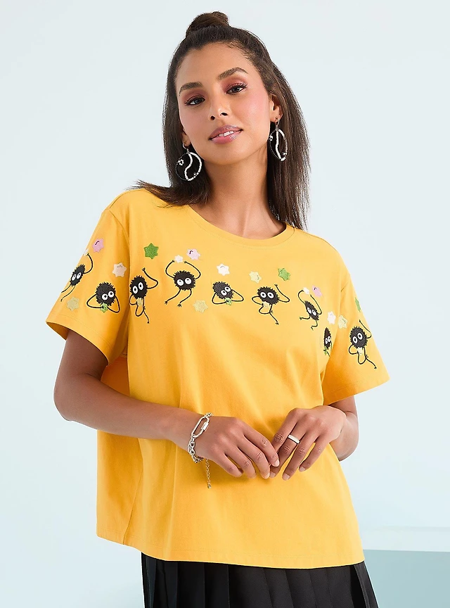 Our Universe Studio Ghibli® Spirited Away Embroidered Soot Sprites Women's Cropped T-Shirt - BoxLunch Exclusive