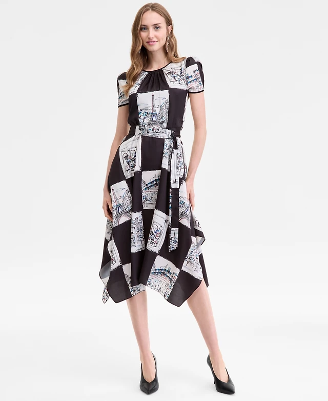 Donna Karan New York Women's Dot-Print Tie-Neck A-Line Dress