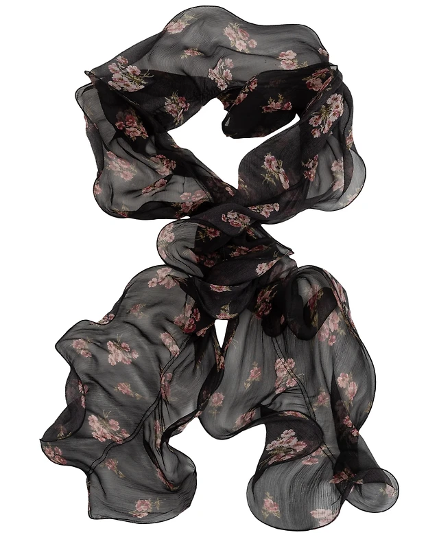 Jessie Zhao New York Double Sided Wool Silk Scarf Of Black Garden