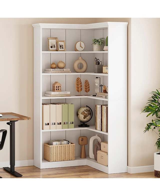 gaomon Corner Bookshelf, 5-Tier Bookshelves with 4 Hooks, Convertible Bookshelf