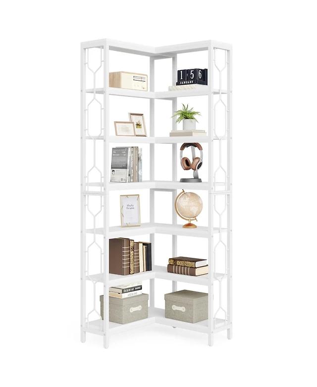 Tribesigns 7-Tier Corner Shelf, 78.7” Extra Tall Corner Bookcase, Industrial Slim Corner Bookshelf for Small Narrow Space, Wood Corner Shelf St