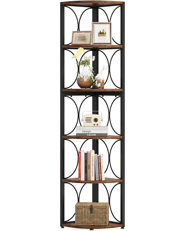 Tribesigns 6-Tier Corner Shelf Set of 2, 75 Inch Tall Narrow Bookshelf Storage Rack, Etagere Shelves Display Stand for Small Spaces, Rustic Open Bookc